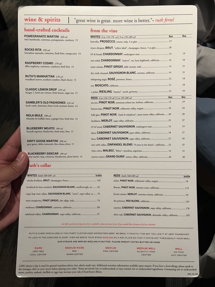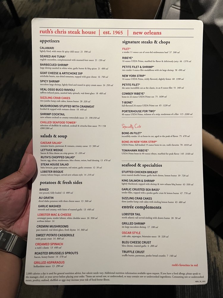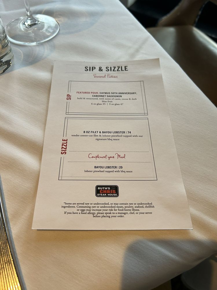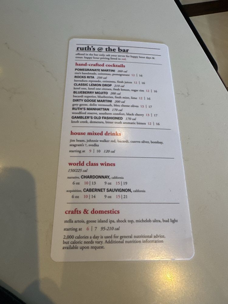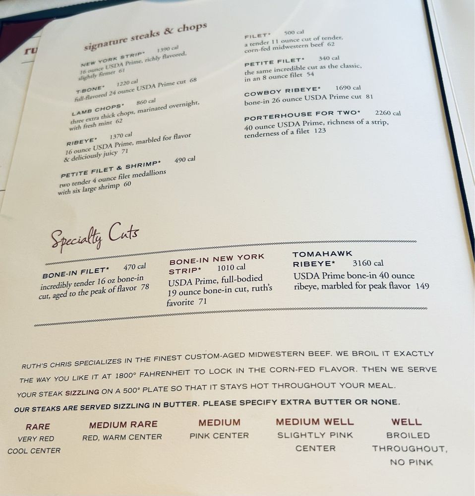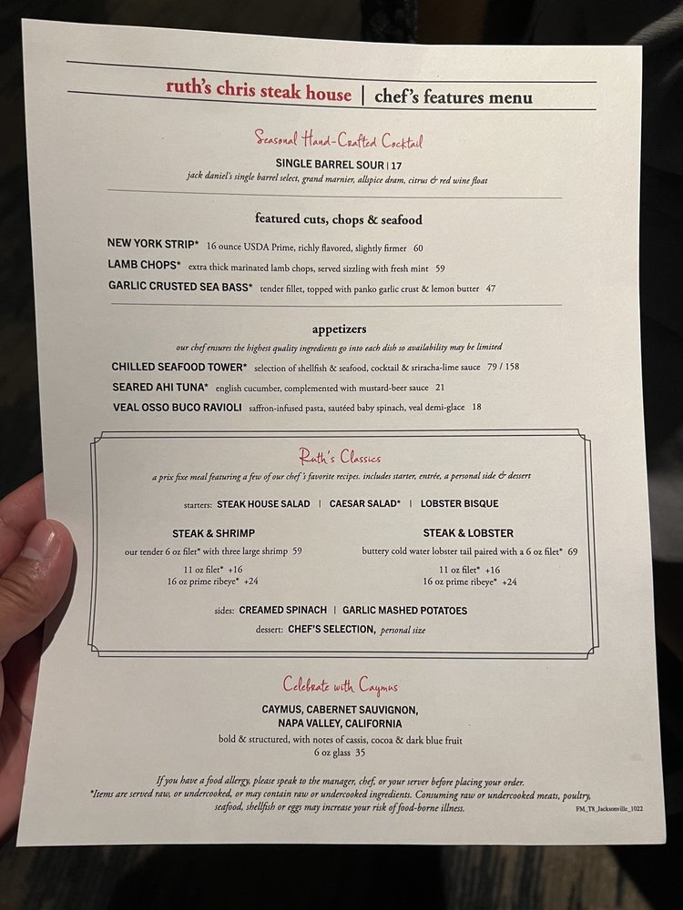 Ruth's Chris Steak House 1201 Riverplace Blvd Menu (Update 2025)